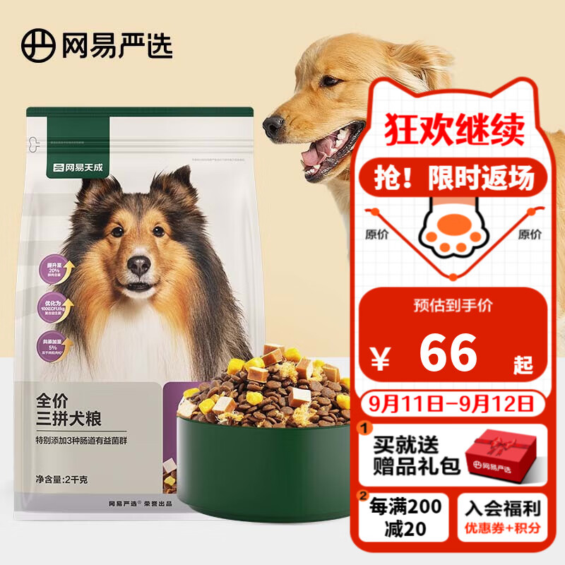 霆特网易天成全价三拼犬粮 狗粮成犬幼犬小型犬冻干狗粮 金毛泰迪狗粮 【3.0升级款】2千克*1袋
