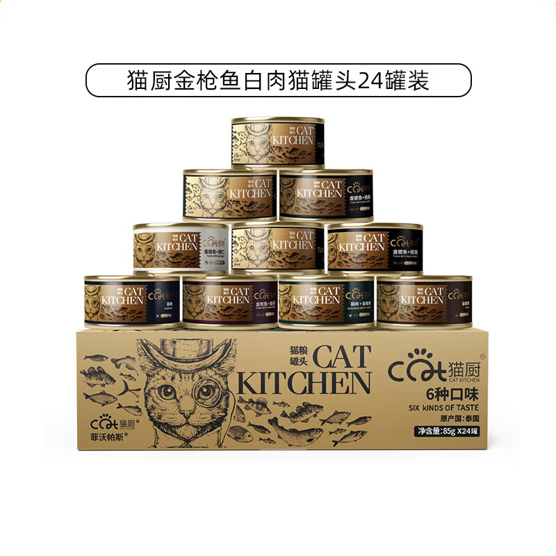 凛东腐败猫猫厨小金罐泰国原产金枪鱼白肉猫罐湿粮罐头猫零食补水24罐 85g混合口味 24罐