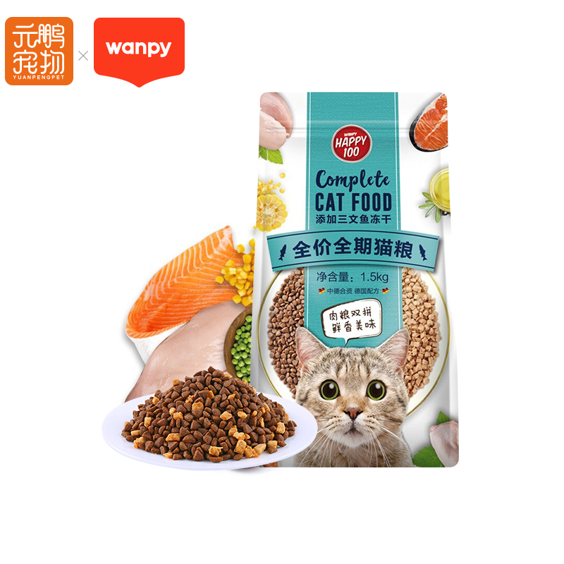 顽皮(Wanpy)全价冻干猫粮 成幼猫通用营养双拼粮 1.5kg