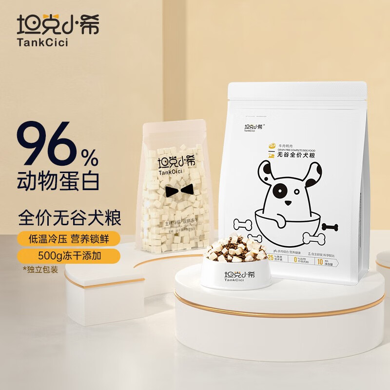 坦克小希宠物狗粮小型犬幼犬成犬泰迪比熊博美柯基法斗通用型冻干双拼狗粮 牛肉鸭肉冻干双拼10.5kg 全犬期 全犬种