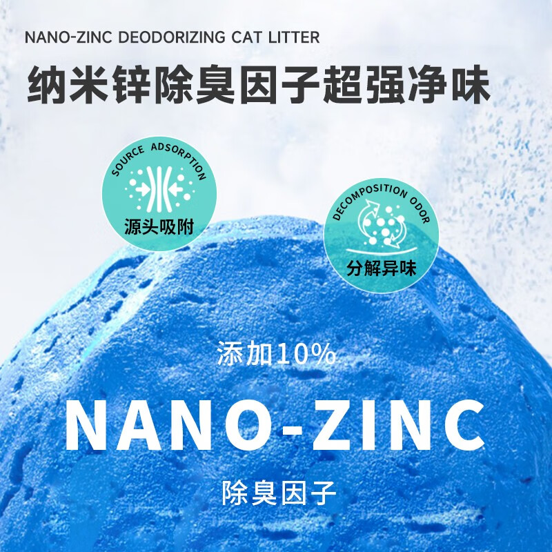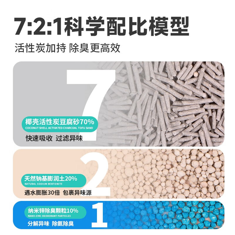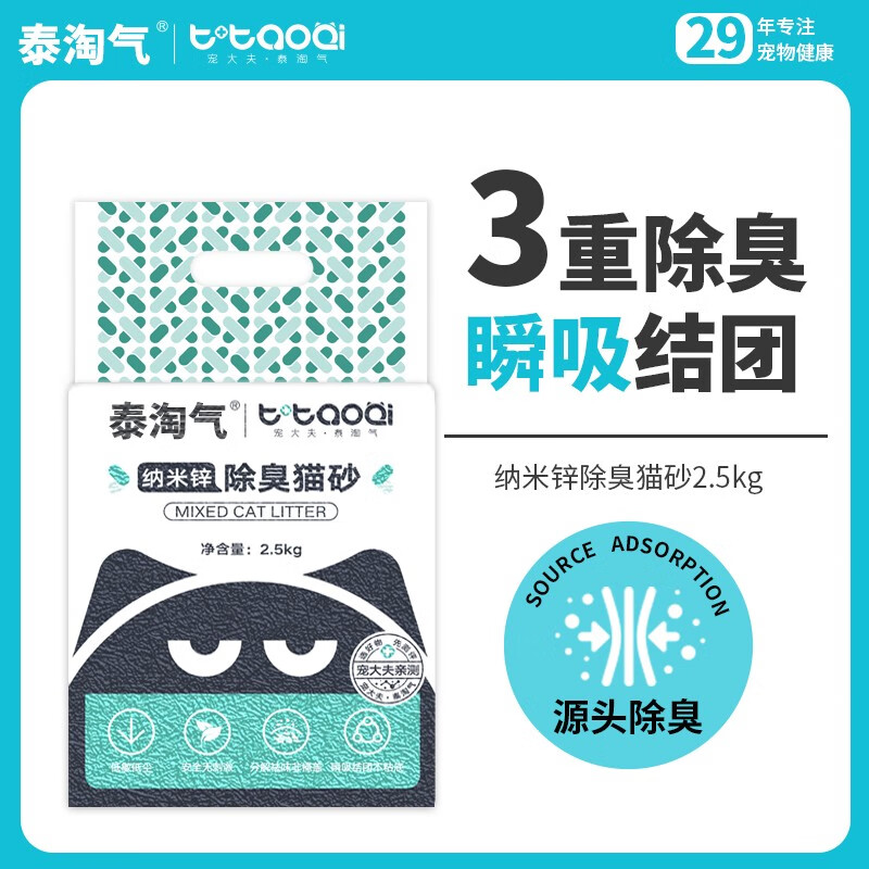 泰淘气纳米锌混合猫砂高端活性炭豆腐纳基膨润土混合砂三重除臭去除异味 2.5kg*8包