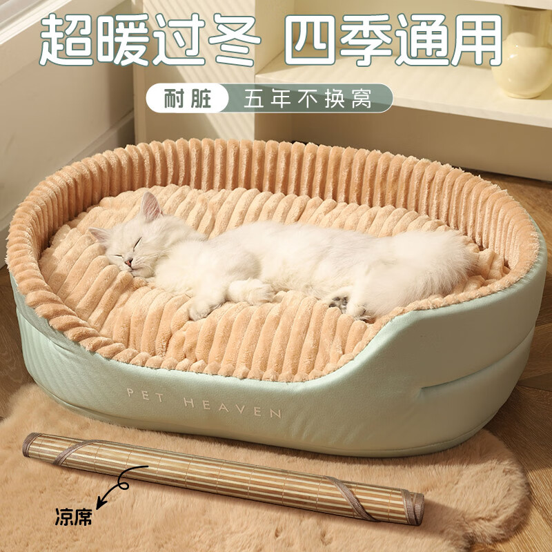 华元宠具(hoopet)猫窝四季通用夏天凉席可拆洗狗窝猫咪夏季冰垫冰窝猫床睡垫宠物床 银灰色猫窝 凉席 厚垫【四季】 M 建议20斤内宠物(现货速发)