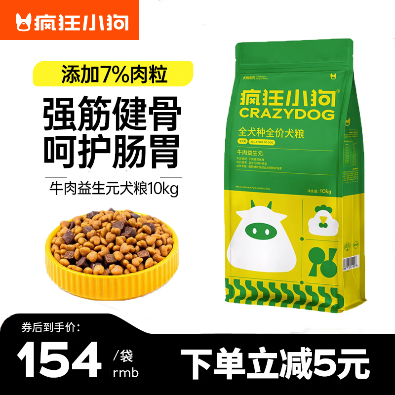 疯狂小狗狗粮全犬种通用金毛泰迪柯基哈士奇边牧幼犬成犬通用全价犬粮10kg 【呵护肠胃】牛肉益生元20斤