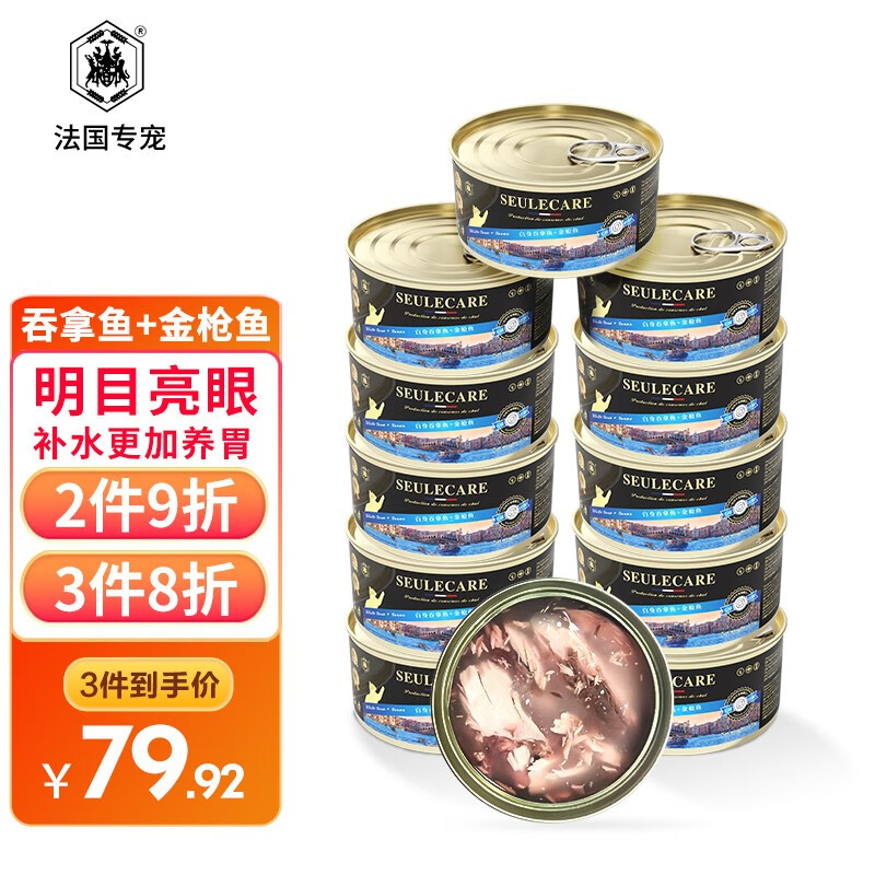 专宠 猫罐头主食 成猫宠物猫粮猫湿粮猫咪零食 白肉吞拿鱼 金枪鱼 170g*12罐