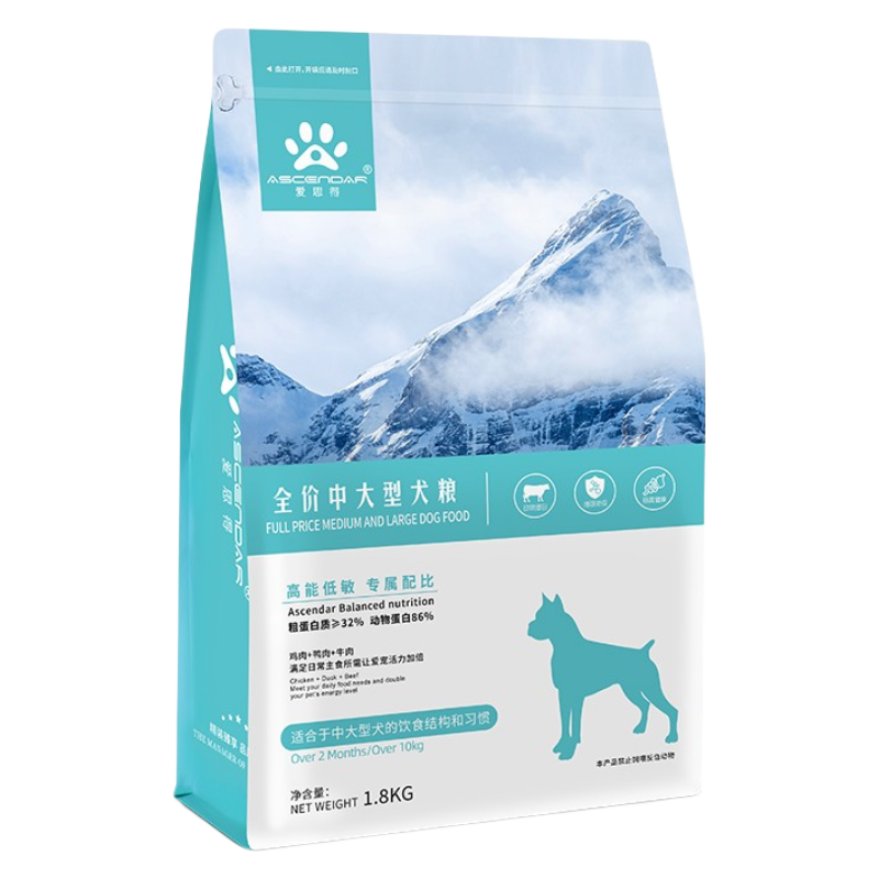 爱思得(Ascendar)全价中大型犬狗粮天然粮 进口低敏配方1.8kg 犬主粮-新款