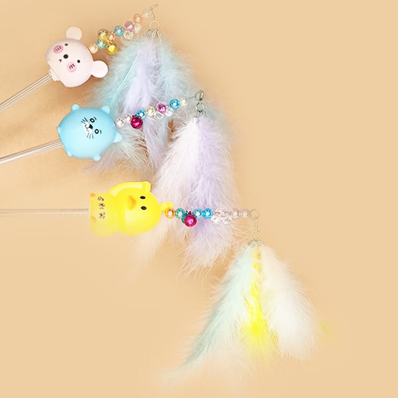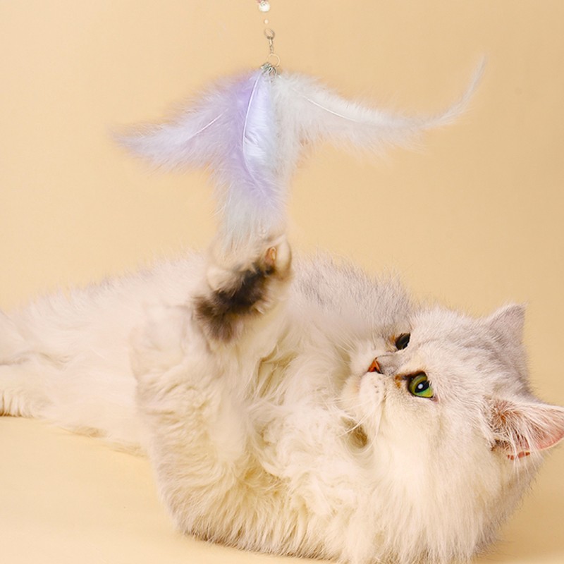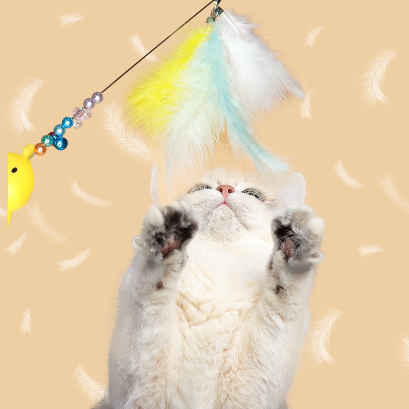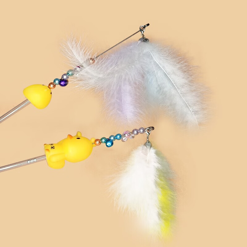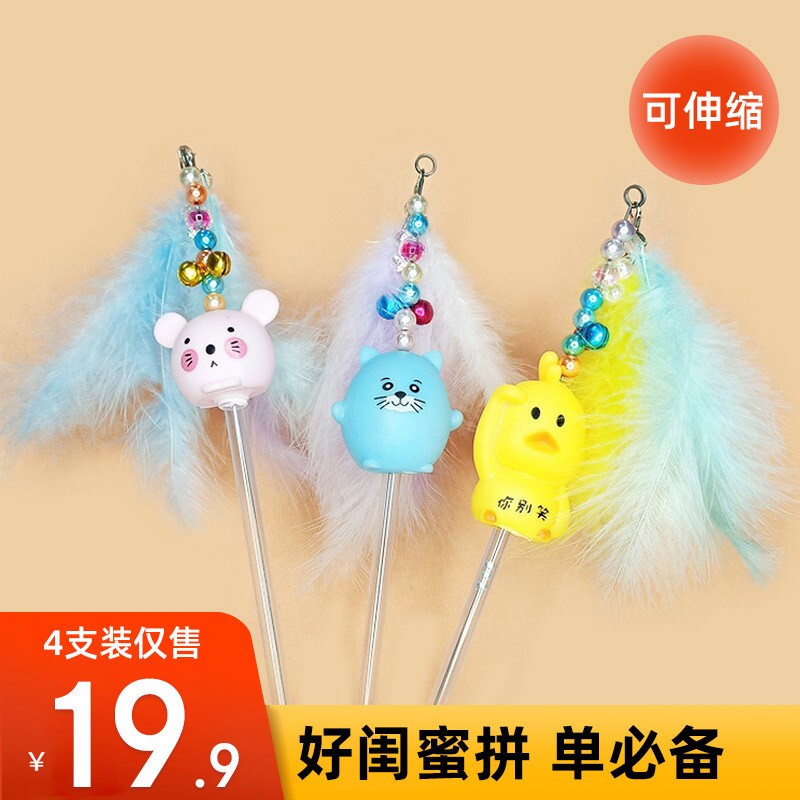 鄂芯鲜浦力斯奥猫咪玩具逗猫棒可伸缩铃铛耐咬逗猫神器猫玩具猫咪用品 羽毛颜色随机4支装