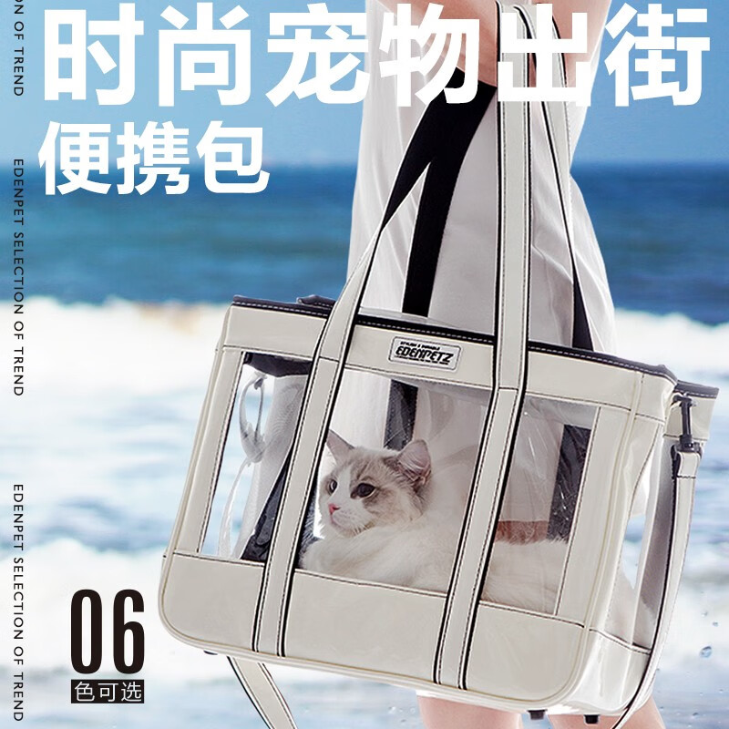 Edenpetz/宜德士 宠物包透明透气猫包外出便携包用品猫笼太空舱小型犬单肩包太空包猫咪背包 米白色(网面款)