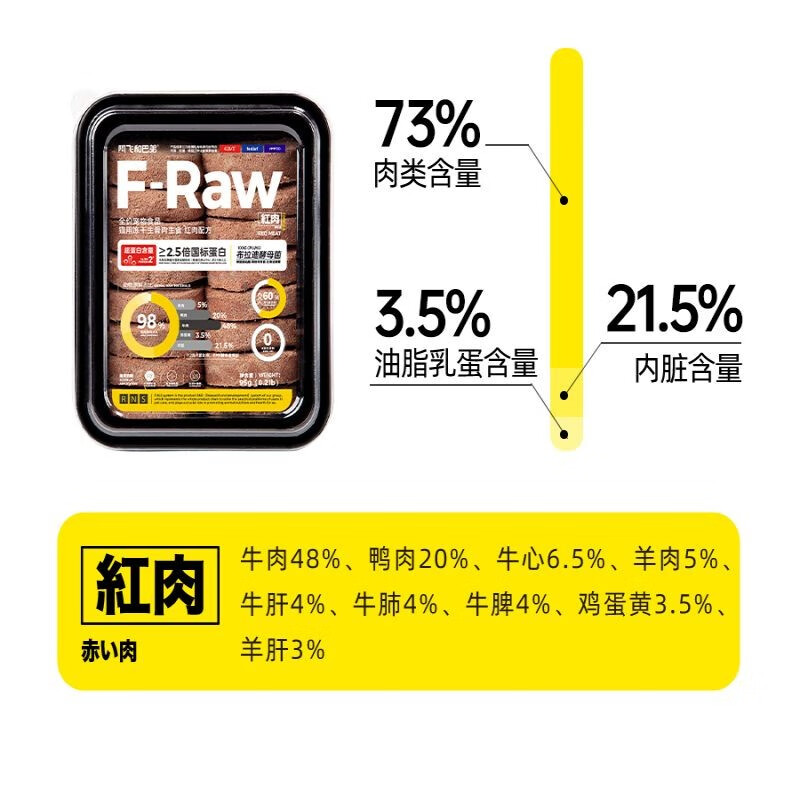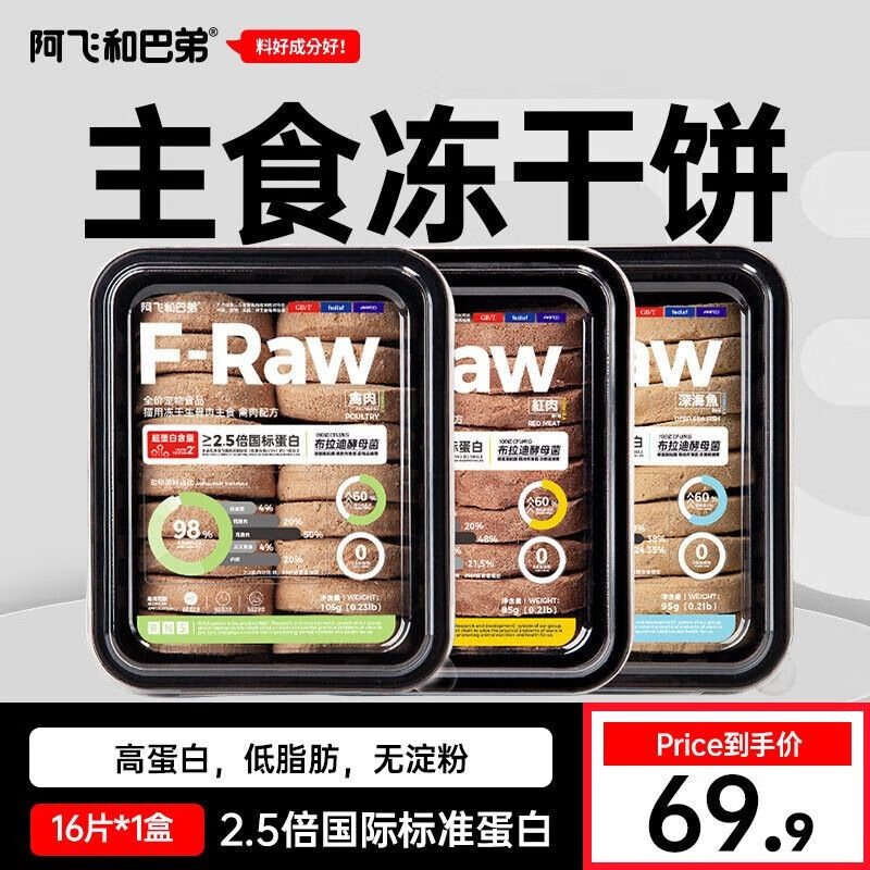 阿飞和巴弟福肉F-Raw全价生骨肉主食冻干95g/105g*1盒无谷猫粮发腮成幼猫 【盒装混合装】共3盒 福肉F-Raw