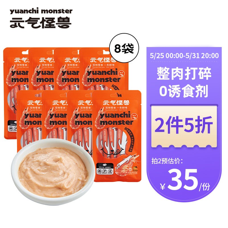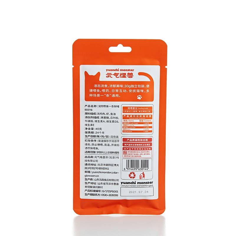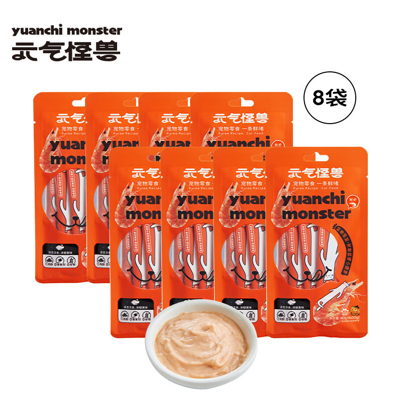 元气怪兽 猫零食猫条幼猫成猫营养猫咪猫湿粮鲜虾味320g(40g*8袋)