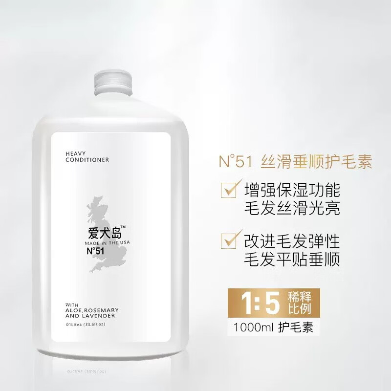 爱犬岛狗狗沐浴露美国进口香波大桶洗澡液 NO·51丝滑垂顺护毛素 1000ml