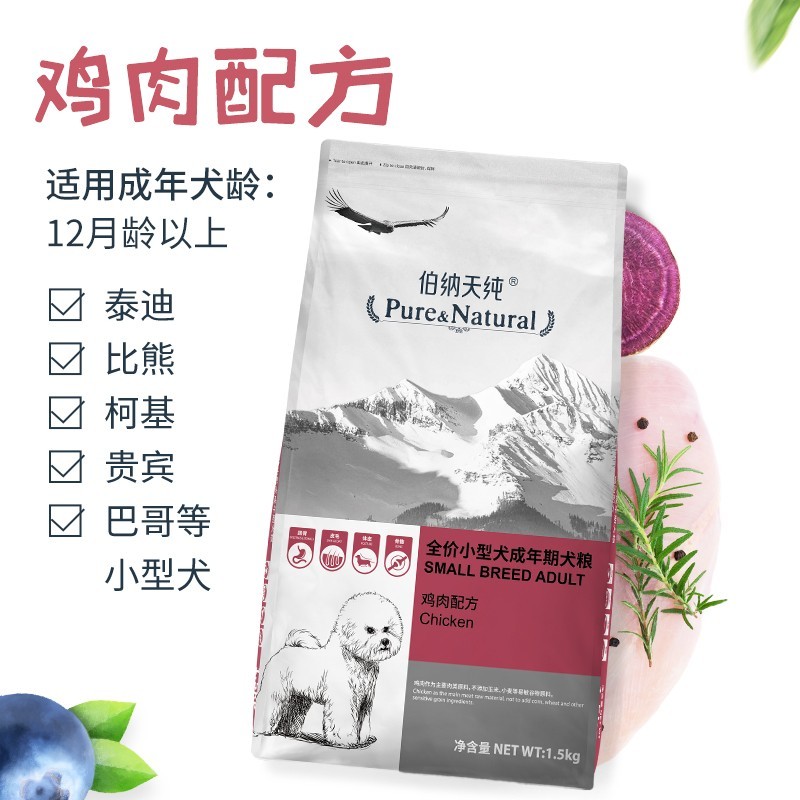 伯纳天纯宠物狗粮柯基小型犬成年犬健胃促吸收犬粮口感升级柯基泰迪贵宾 小型犬成犬1.5kg