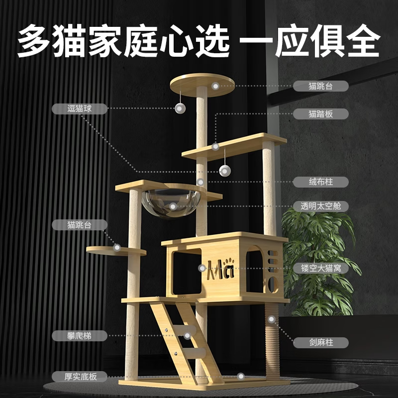 宠情 猫爬架猫窝猫树一体大型猫架猫抓架通天柱跳台太空舱猫咪用品大全 【1.25米】喵星花园