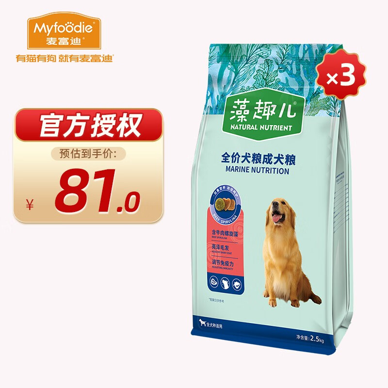 麦富迪(MYFOODIE)麦富迪 狗粮 藻趣儿全犬种通用犬粮 成犬粮15kg 成犬粮7.5kg