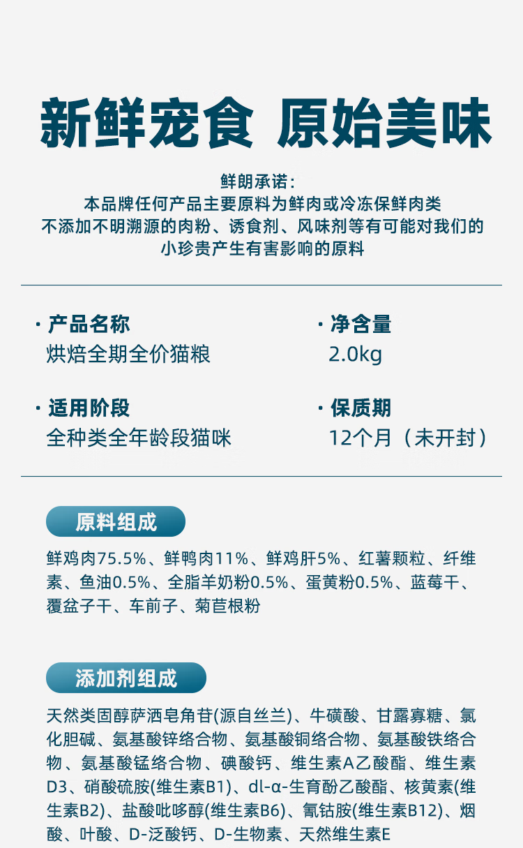 鲜朗 烘焙全价全期猫粮 禽肉口味50g/400g/2kg