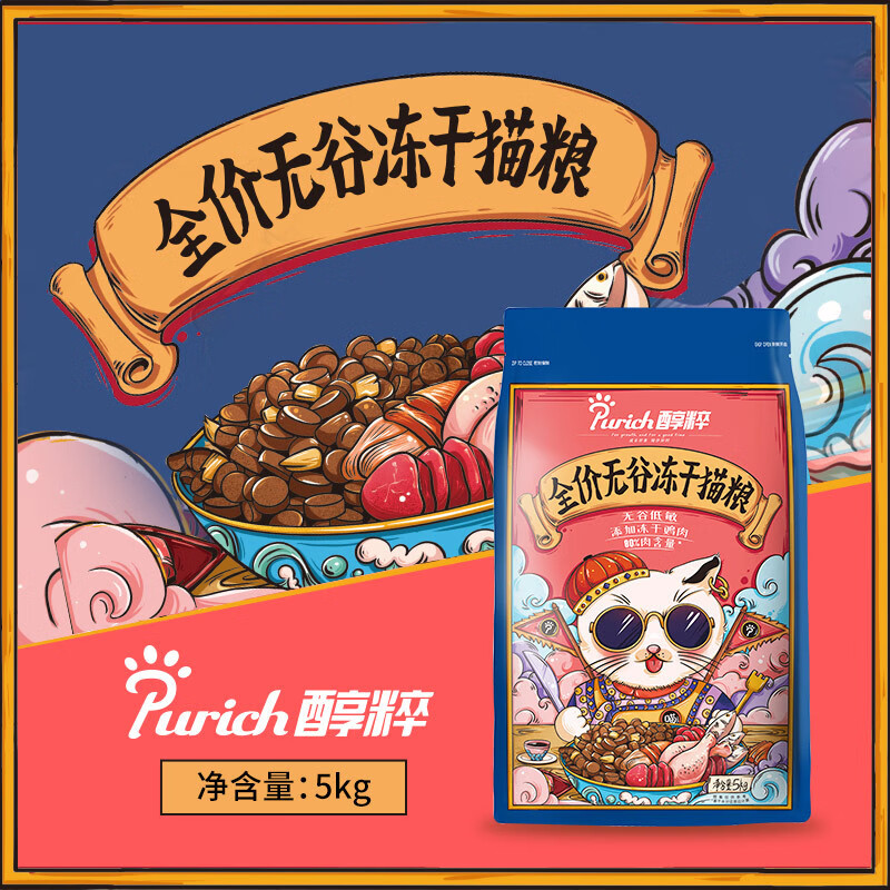 醇粹(Purich)无谷冻干猫粮5kg猫主粮增肥发腮鲜肉营养猫咪全阶段全价猫粮 五谷冻干猫粮80%肉含量 10斤