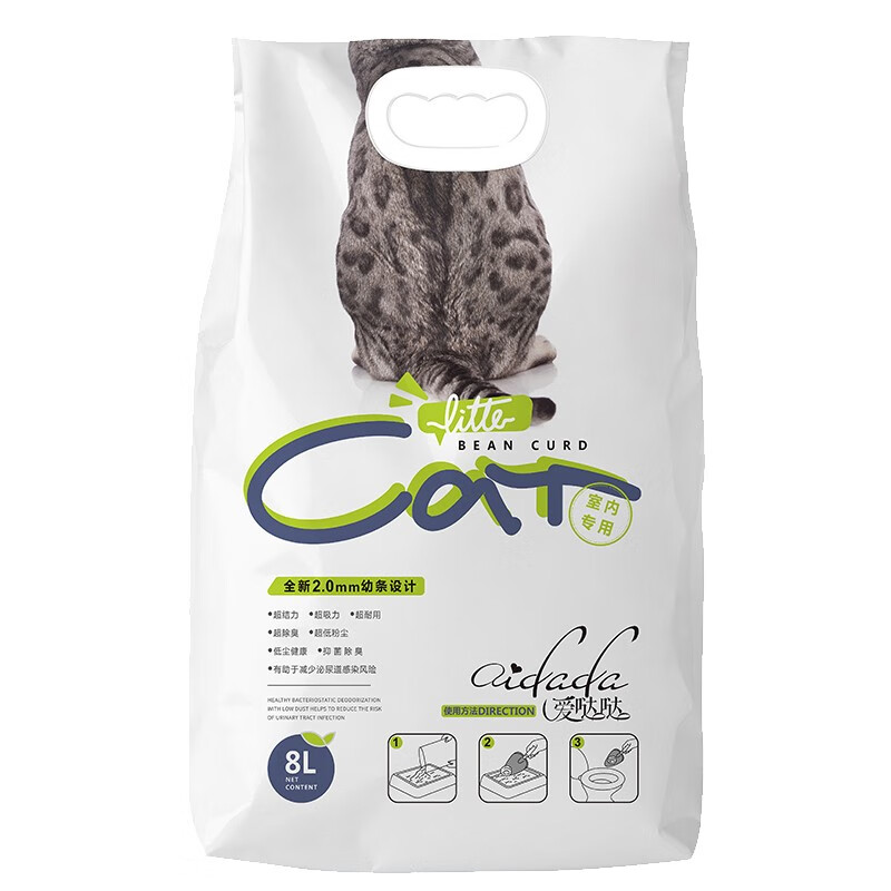 爱哒哒爱哒哒猫砂 豆腐猫砂绿茶味2.8kg/8L 低尘除味易结团 可冲厕所