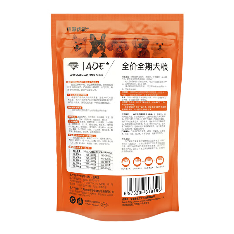 申亚威能(SHENYA)【超值5斤装】ADE狗粮 优能通用型幼犬粮成犬粮金毛二哈营养膳食 ADE狗粮2.5kg
