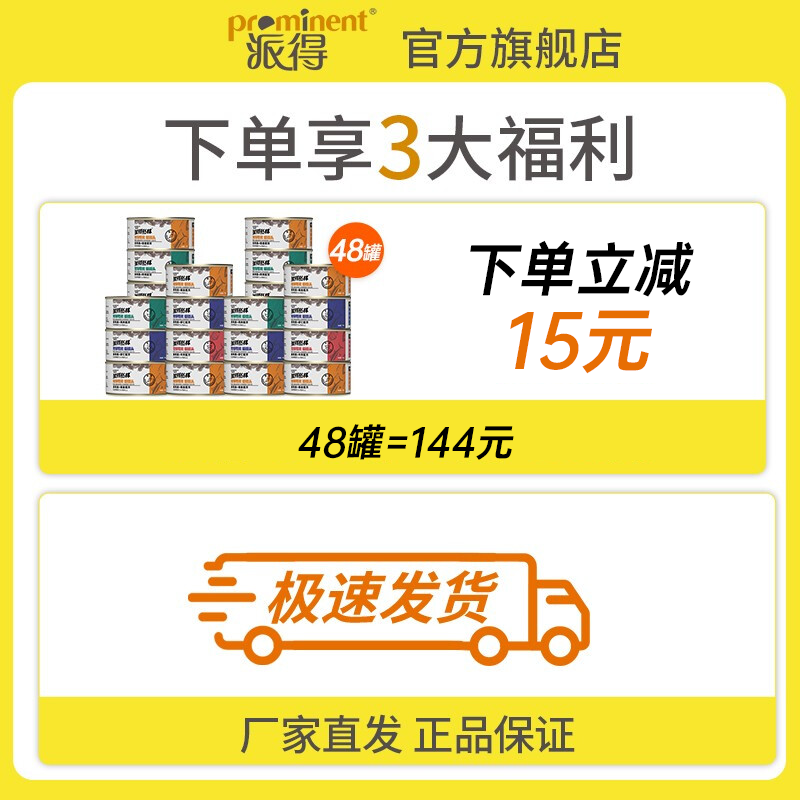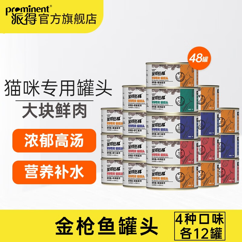 派得猫罐头猫湿粮宠物零食金枪鱼红肉罐头猫咪零食 金枪鱼罐头170g*48罐丨4个口味各12罐