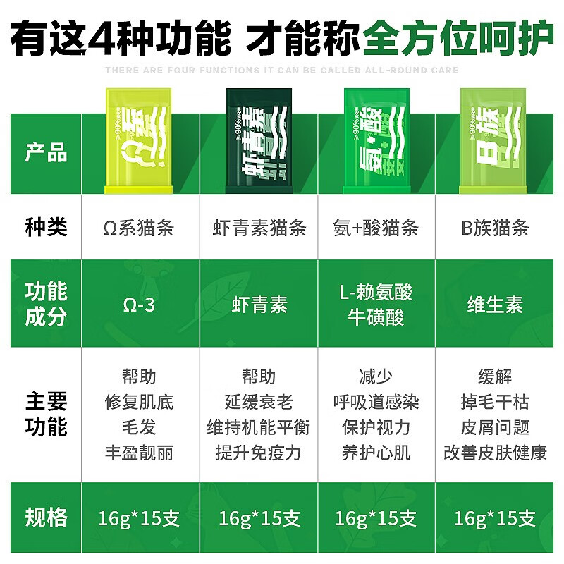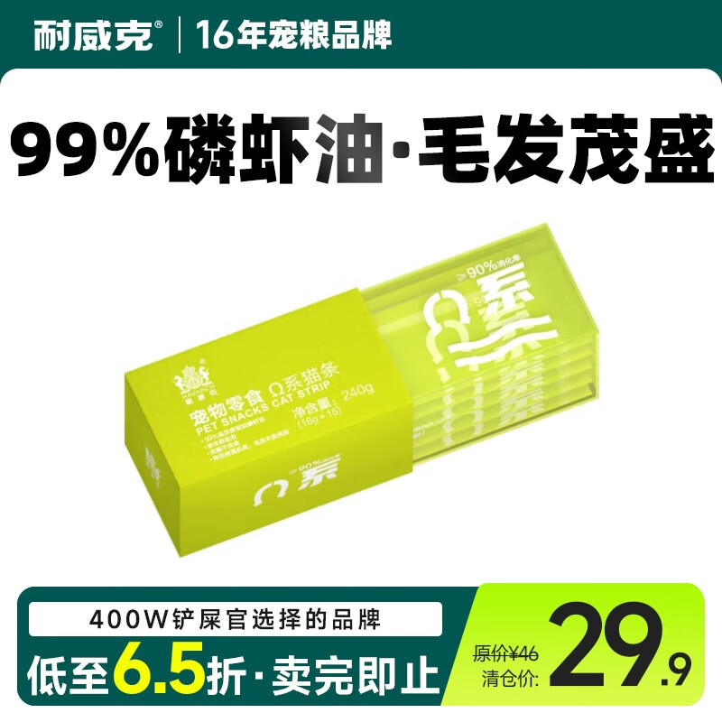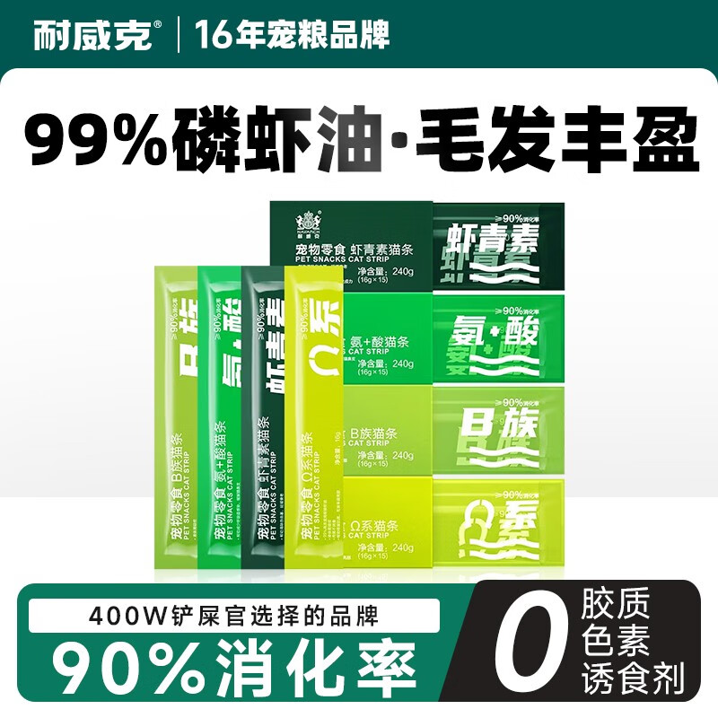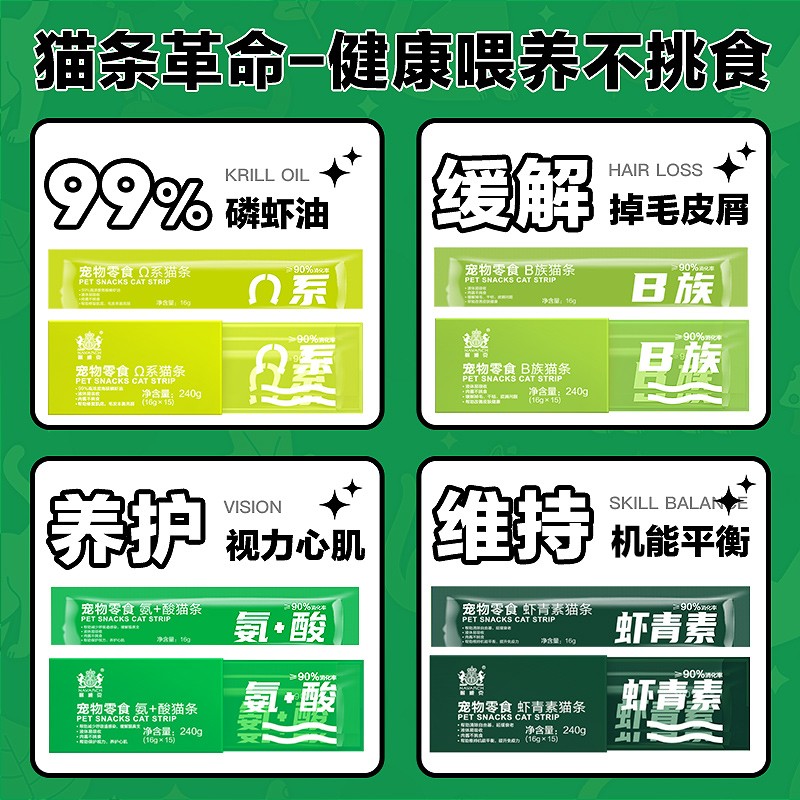 耐威克猫零食功能性猫条16g*15成幼猫湿粮发腮营养增肥补水发腮 Ω系猫条(修复肌底靓丽毛发)