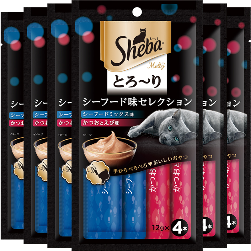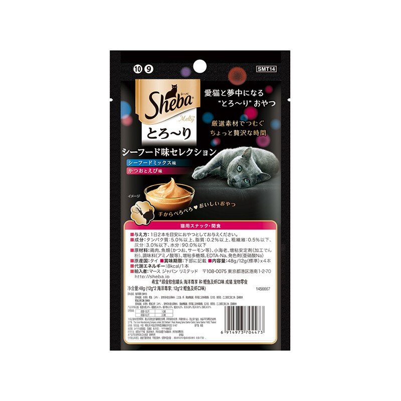 希宝Sheba猫湿粮 成猫大龄猫宠物零食猫条 泰国进口metly舔食软包 海鲜鲣鱼虾12g*24支(6包)