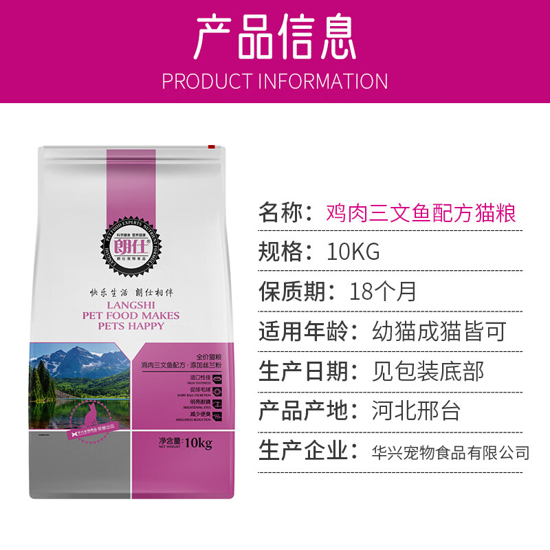 朗仕猫粮 幼猫成猫全价全阶段猫粮10kg 鸭肉金枪鱼