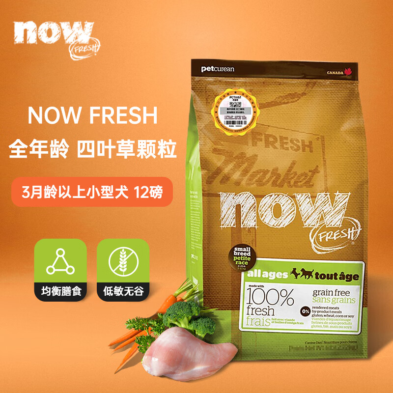Petcurean Now!去骨肉无谷天然狗粮 全年龄小型犬粮 now四叶草12磅小颗粒