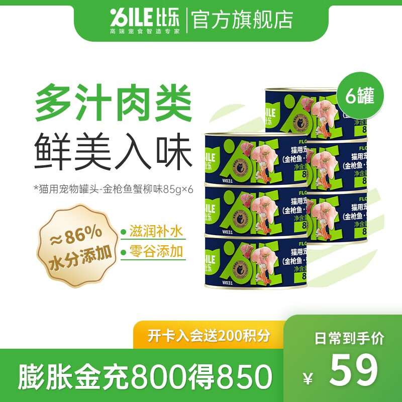 比乐猫罐头 全价成猫幼猫湿粮零食 英短蓝猫布偶营养补钙罐头85g 金枪鱼 蟹柳 鸡肉 6罐