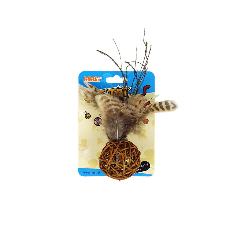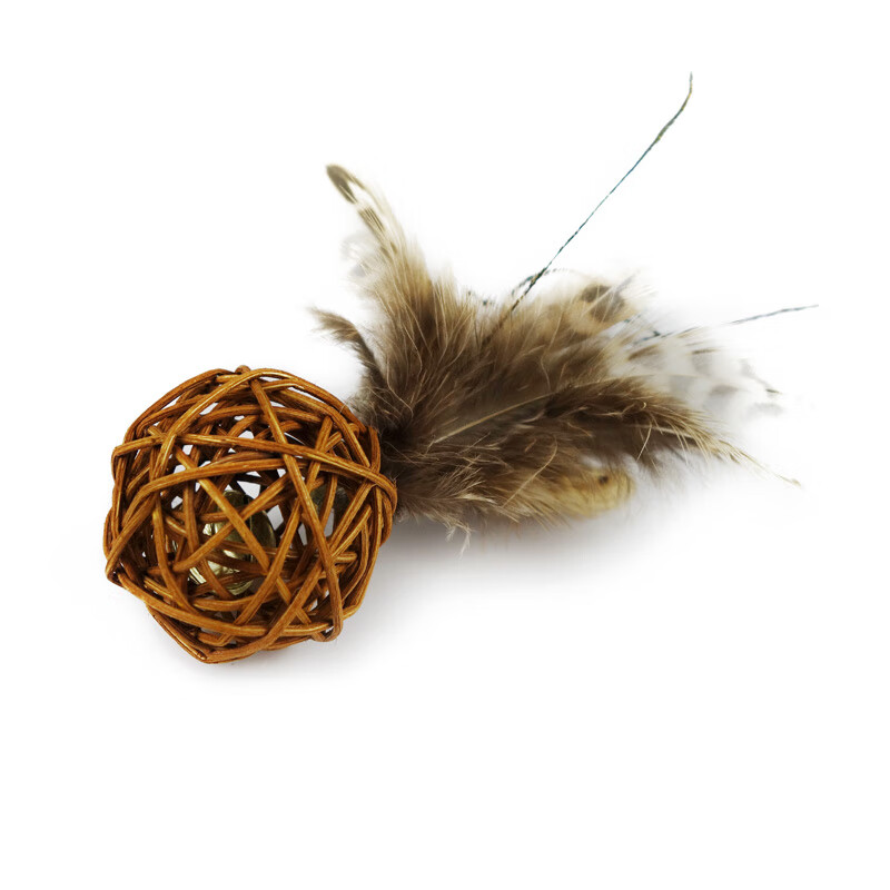田田猫羽毛藤编小球猫玩具内含铃铛羽毛球抓咬猫玩具宠物猫咪用品 1个藤编球