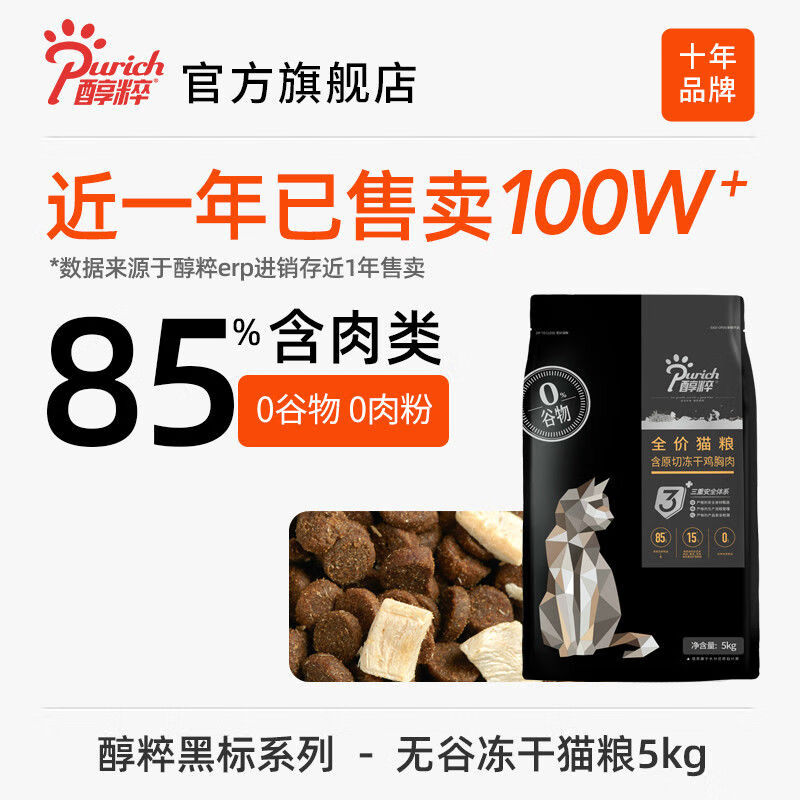 醇粹黑标猫粮冻干成猫幼猫纯粹5kg 无谷配方-添加鸡肉冻干 5kg /包