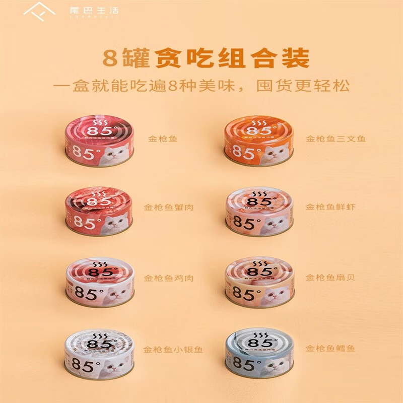 凛东 85度85g*12罐猫罐头高汤补水白肉幼猫咪营养增肥湿粮 85度85g*12罐混合装随机 12罐85度