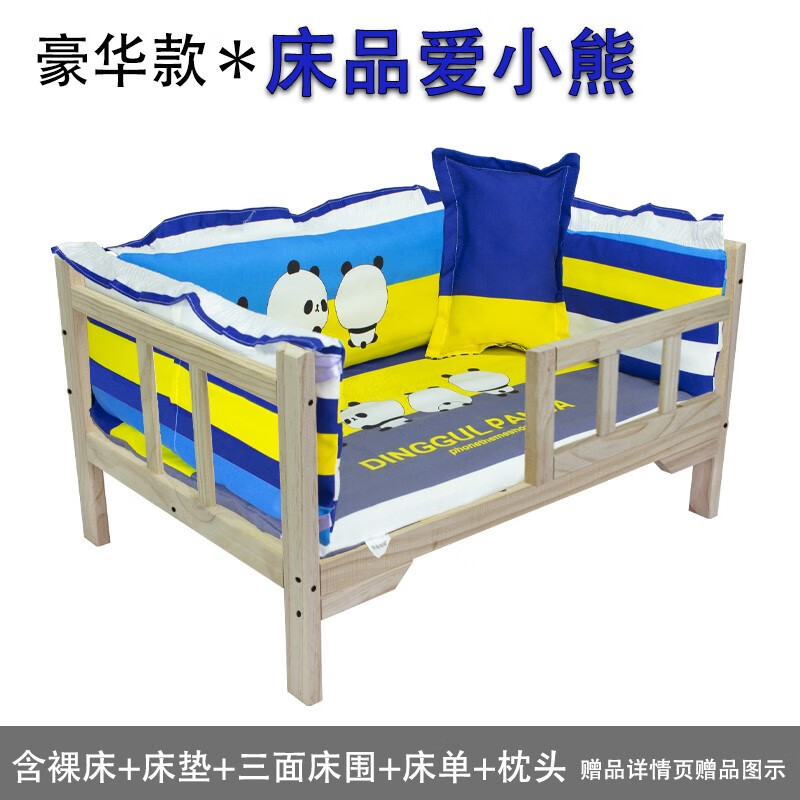 华迪尚宠狗狗窝狗床实木质宠物床蓝猫窝木制猫床泰迪窝比熊床柯基床金毛狗 前护栏款裸床 床品爱小熊 L号长90宽55适合身长75内