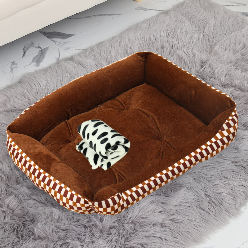 狗窝四季通用狗狗垫子泰迪柯基小型大型犬宠物用品床猫窝冬天保暖 咖啡格子 毛毯 90*70CM(70斤内)