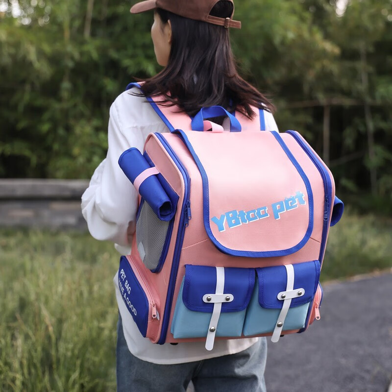 宠多滋宠物包外出猫包透气宠物双肩包可手提猫书包大容量狗包 米白拼绿