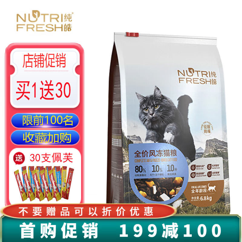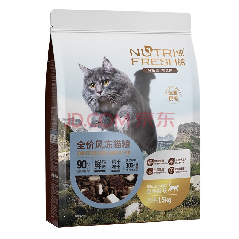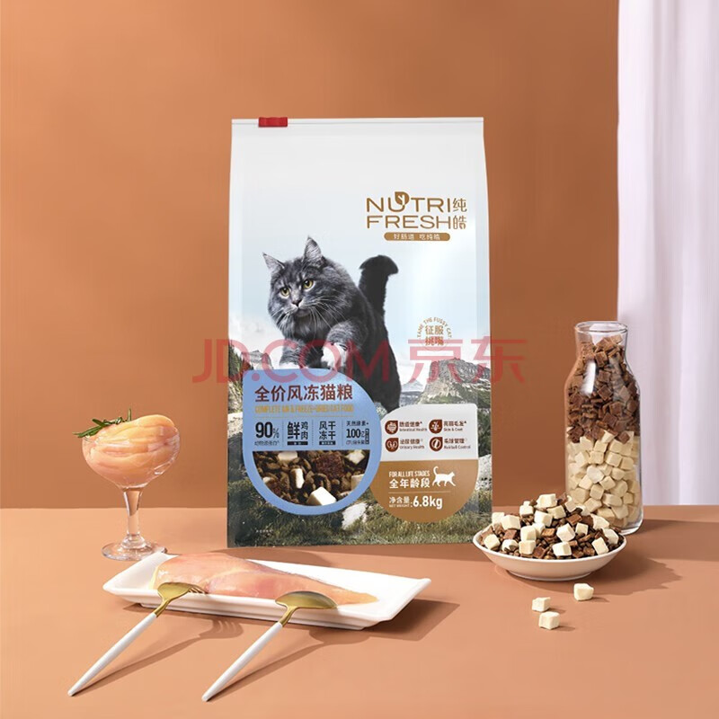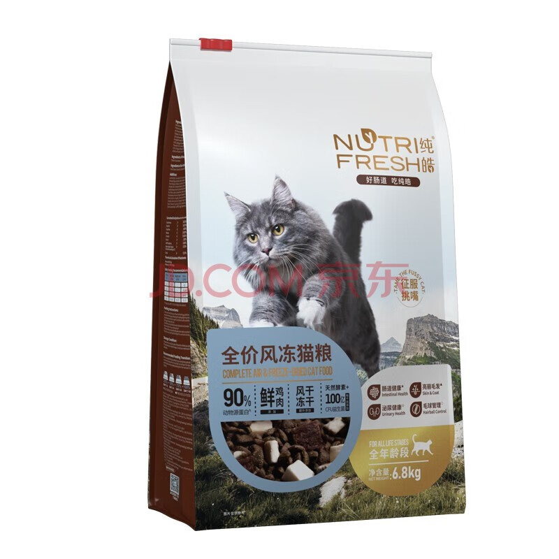 纯皓(Nutrifresh)全价风冻猫粮全优幼猫益生菌天然粮酵素无谷猫粮幼猫鸡鱼肉配方 全价全龄风冻猫粮6.8KG