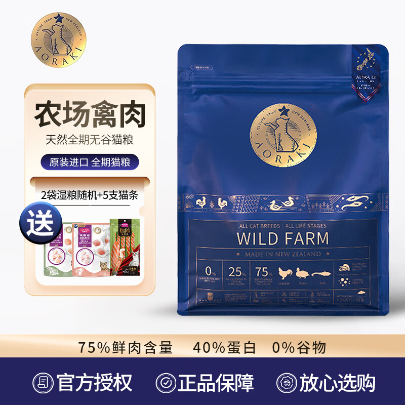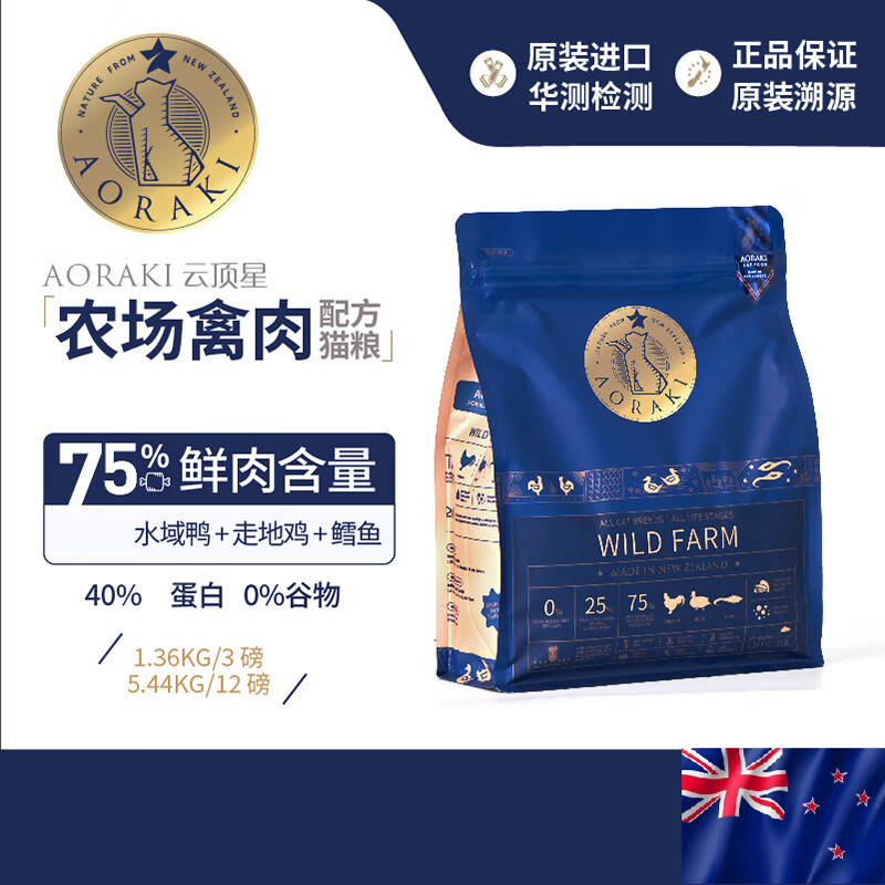 aoraki云顶星高肉无谷猫粮 成猫幼猫通用型猫主粮 农场盛宴禽肉1.36kg