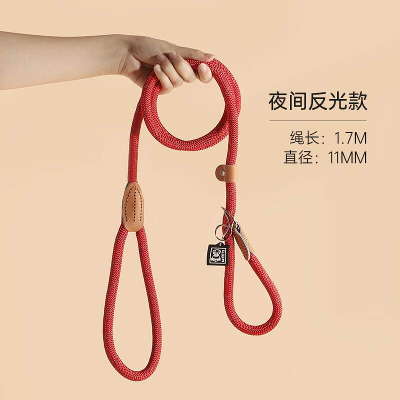 M-PETS-ZH狗狗牵引绳牵引狗绳p绳大型犬金毛p链狗绳子中小型犬柯基防爆冲 红1.7m加厚【100斤内】夜反款