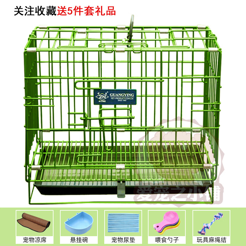 栗好嘉中盈狗笼加粗不锈铁丝带天窗泰迪狗笼子猫笼兔笼宠物折叠中小型犬 绿色笼子 凉席套餐礼品 S号46x31x40CM适5斤以下没天窗