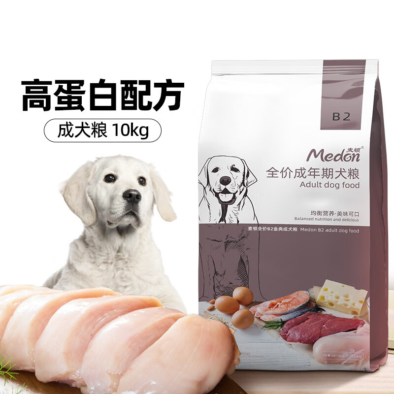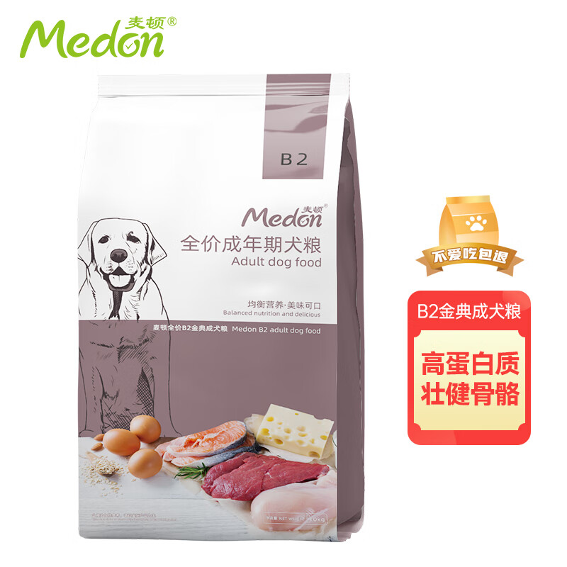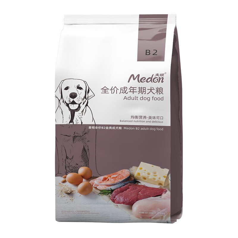 麦顿 狗粮全价B2金典成犬粮 通用成年期金毛萨摩哈士奇狗粮 10kg