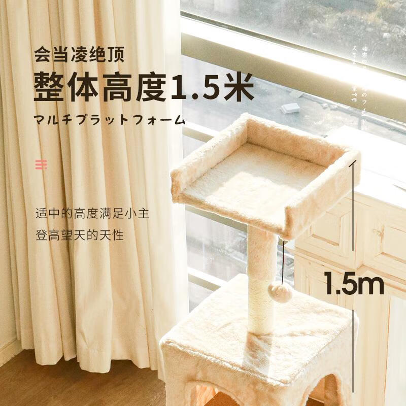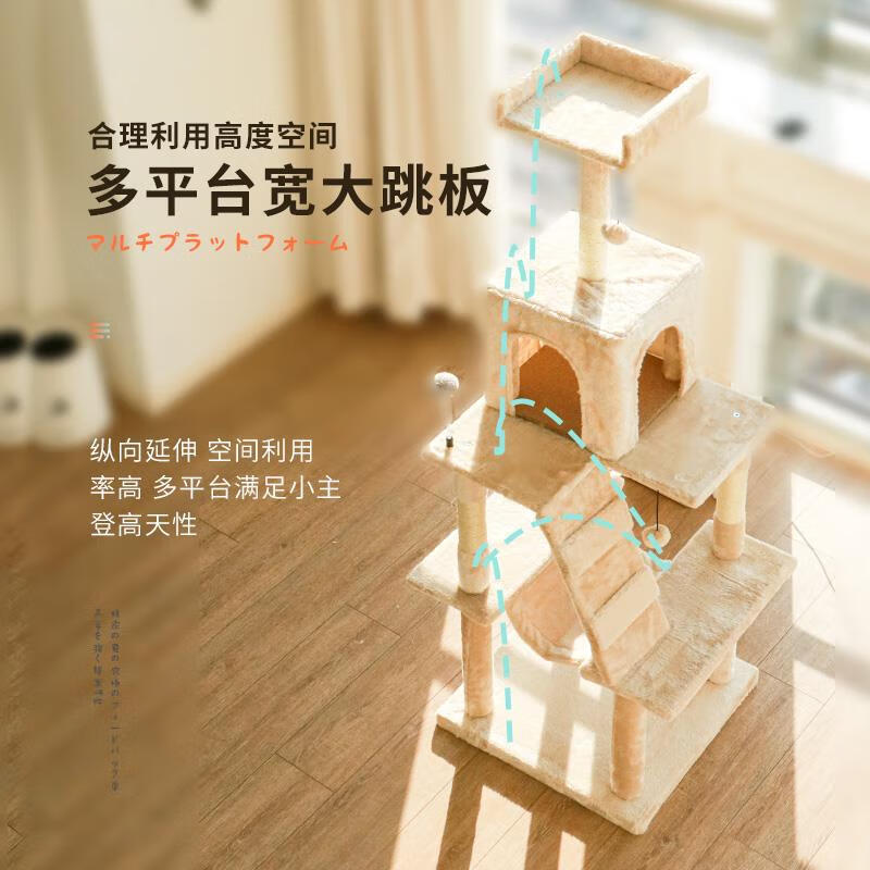 猫爬架猫窝猫树一体大型猫架子四季通用抓板通天柱别墅猫玩具用品 现货速发豪华多层猫爬架-米色