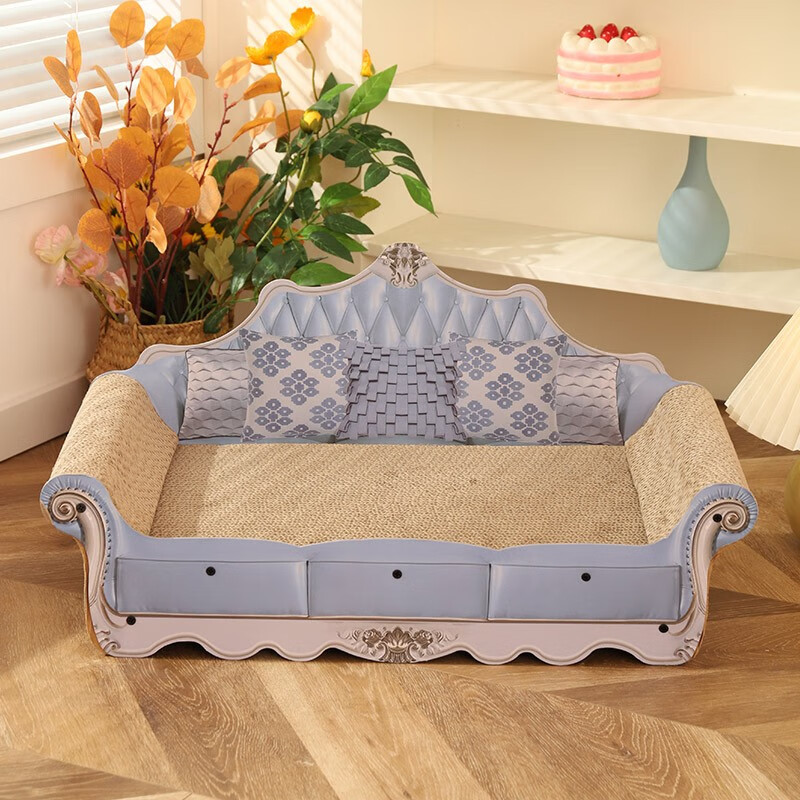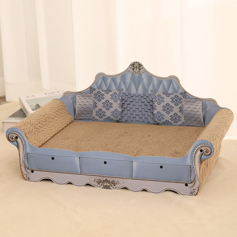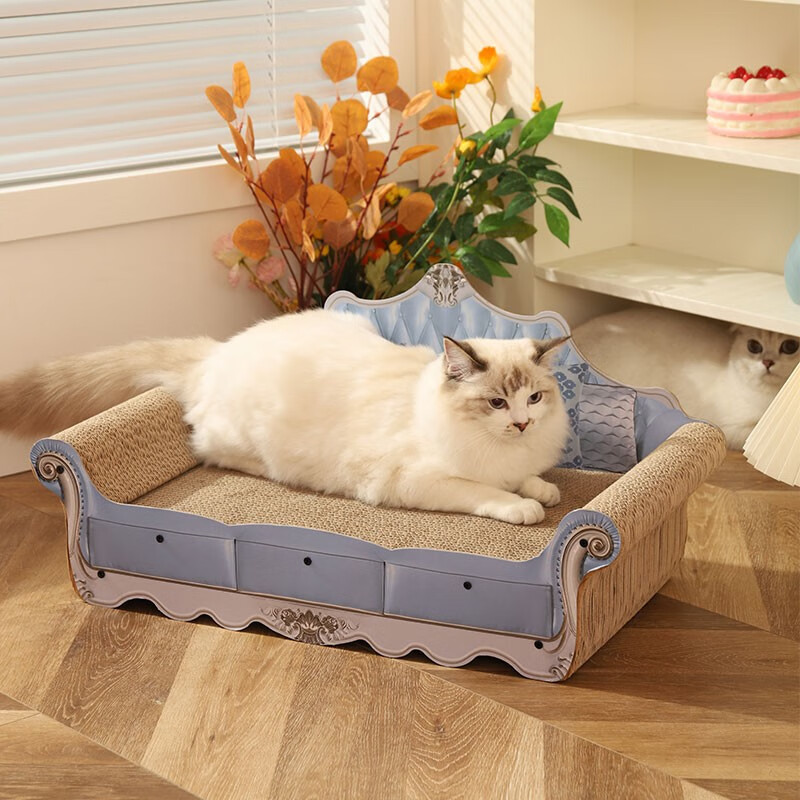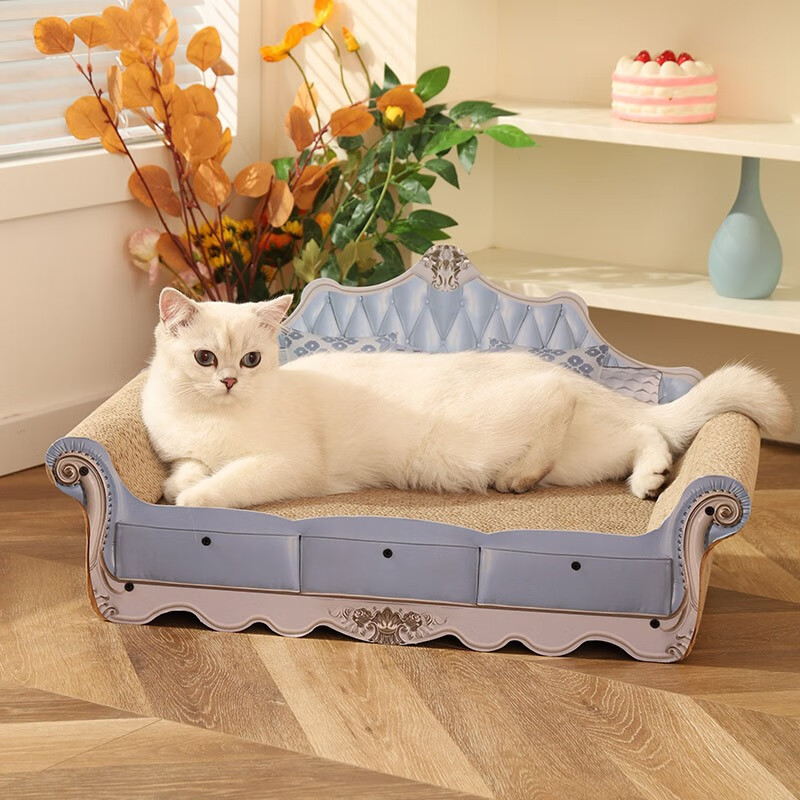 hoopet 猫抓板沙发耐磨不掉屑猫爪板猫窝猫床一体耐抓床贵妃椅大号超大号瓦楞纸专用宠物猫咪保护沙发 蓝色 复古猫抓板【需组装】
