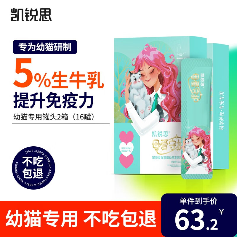 凯锐思 红肉猫罐头猫咪幼猫成猫全阶段增肥营养整箱零食 幼猫专用罐头80g*16