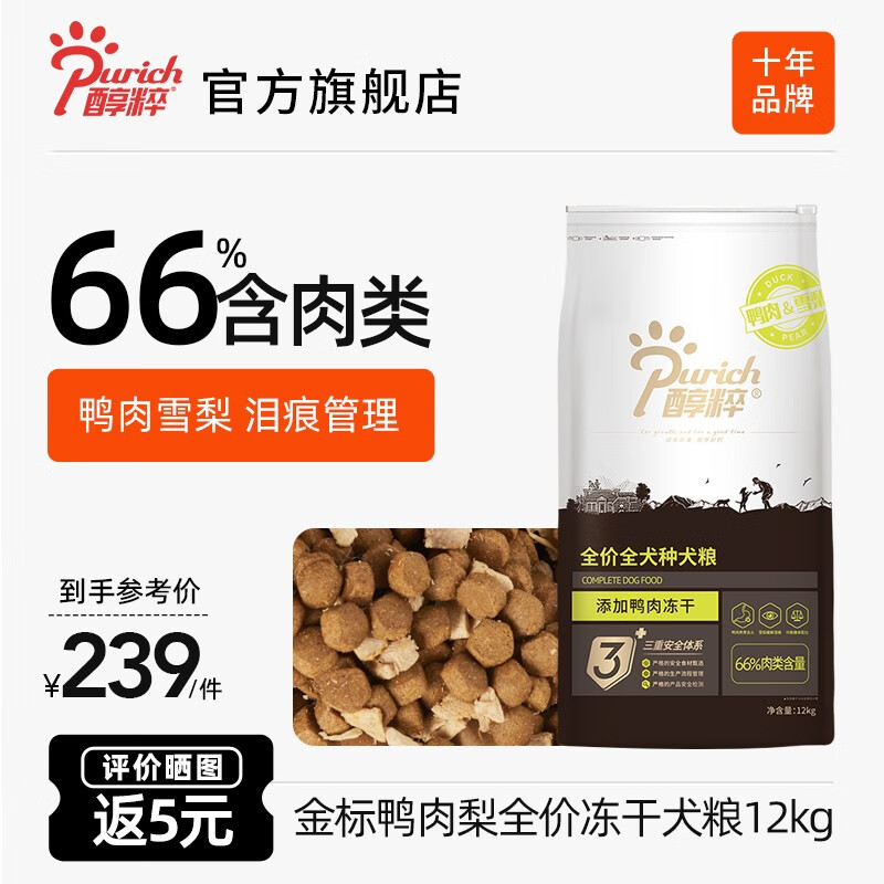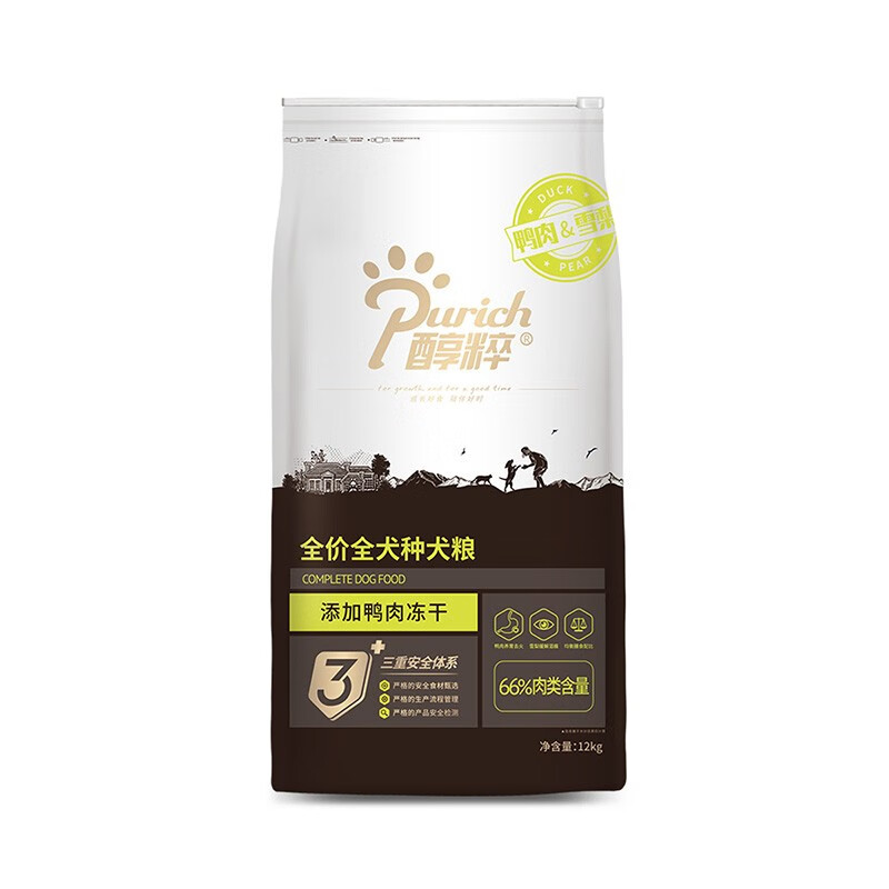 醇粹金标狗粮 全价大型犬狗干粮纯粹狗粮金毛犬粮 鸭肉梨12kg(清爽型)