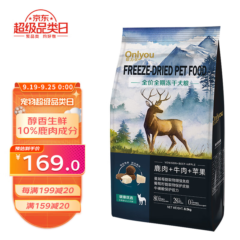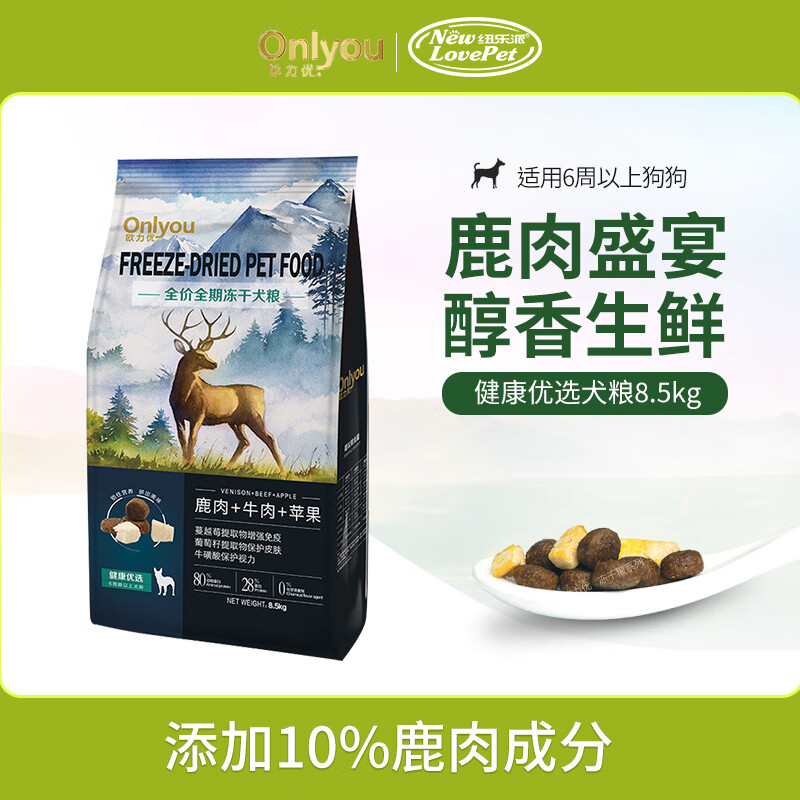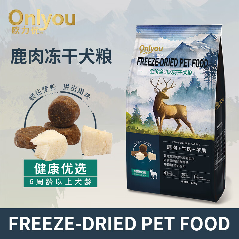欧力优冻干双拼狗粮贵宾金毛雪纳瑞比熊哈士奇柴犬柯基通用型狗粮 健康优选8.5kg