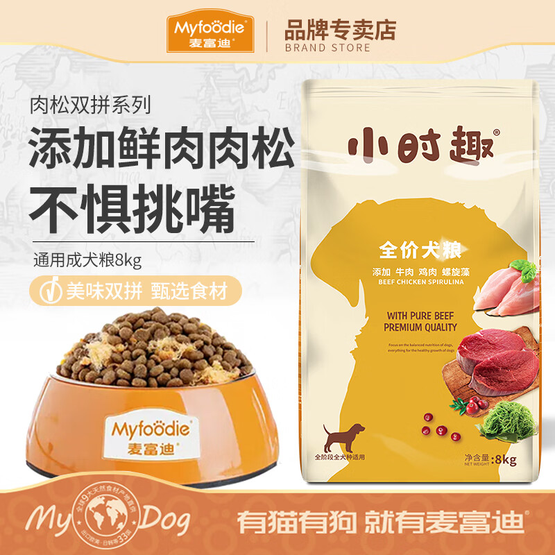 麦富迪小时趣狗粮 全阶段成犬幼犬通用型肉松双拼犬粮 8kg