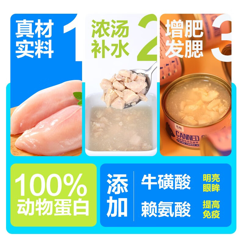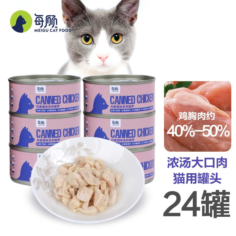 每顾猫罐头 鸡胸肉条猫咪零食猫粮 成猫幼猫湿粮营养补水肉类宠物罐头 鸡肉块85g*24罐整箱原切大口吃肉 全阶段