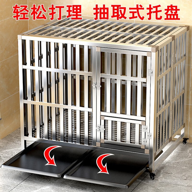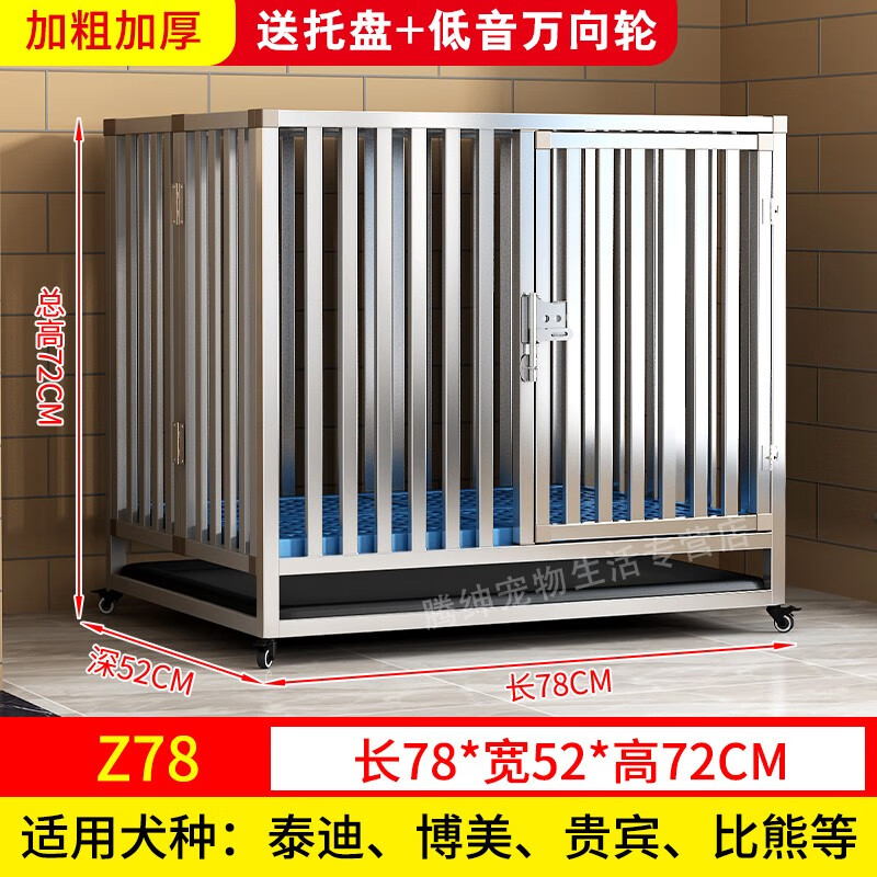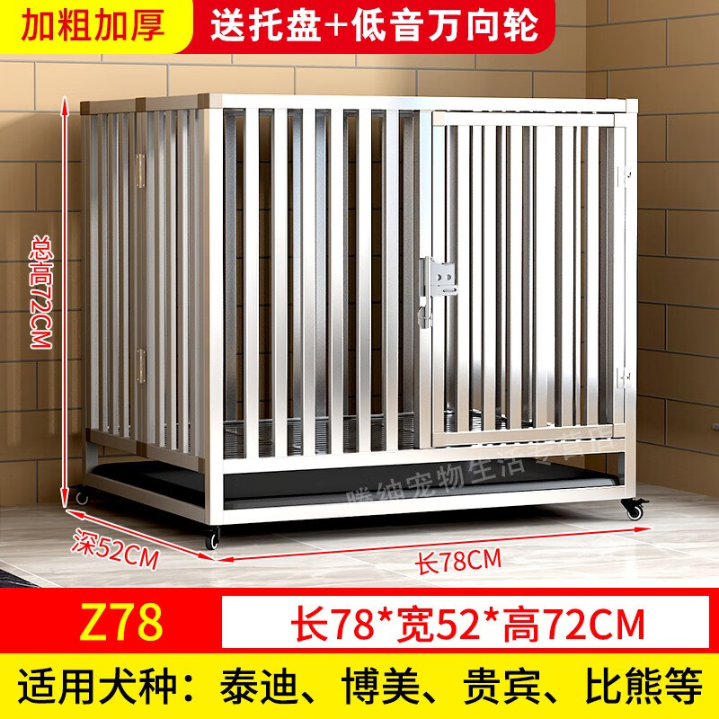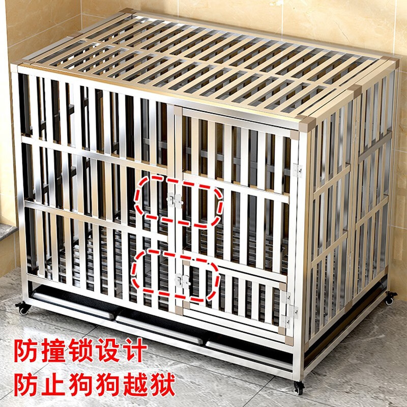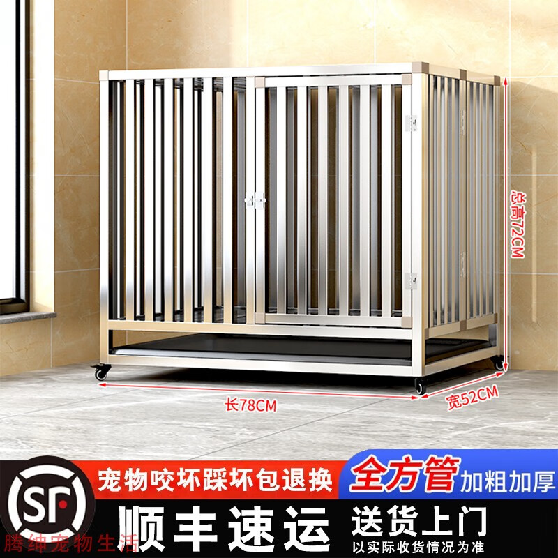 不锈钢狗笼子室内外折叠带厕所分离金毛拉布拉多多方管宠物笼狗窝 Z-78-折叠【无喂食小门】 笼子 不锈钢方管202