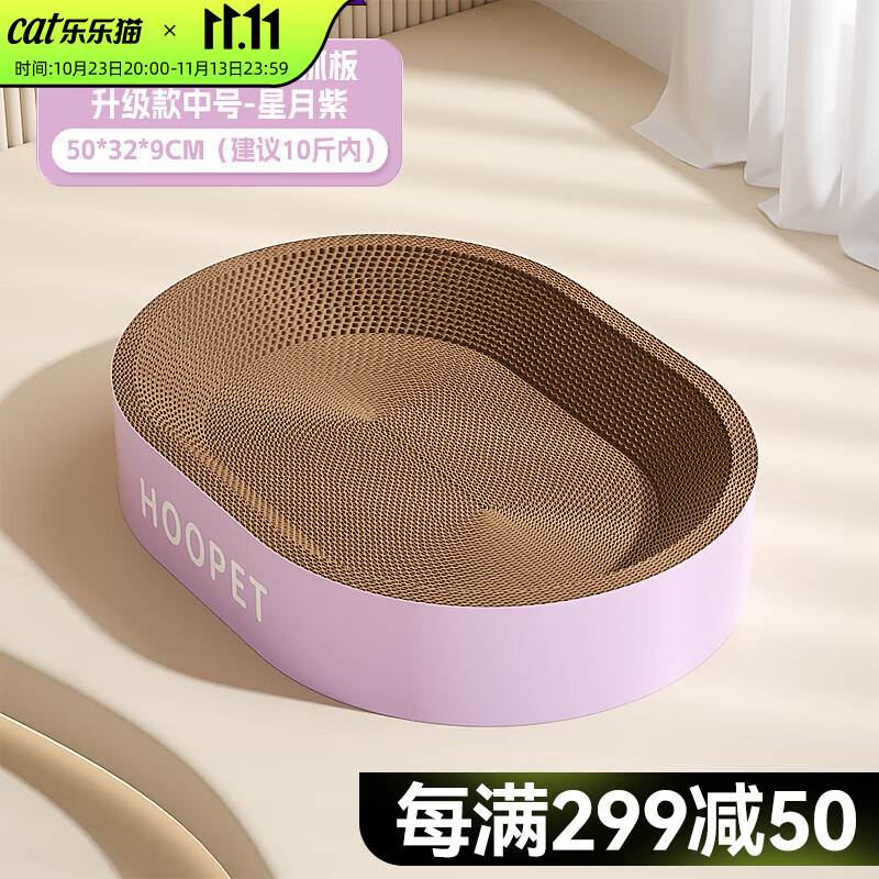 华元宠具(hoopet)猫抓板耐磨不掉屑猫窝一体猫咪抓盆特大号圆形四季通用瓦楞纸玩具 椭圆-星月紫-中号