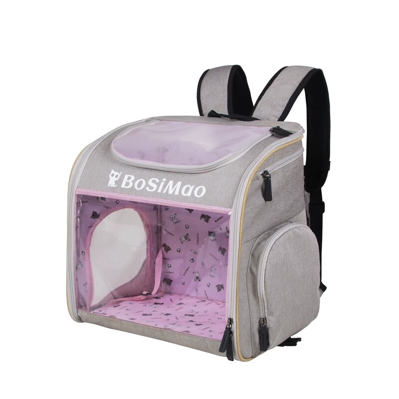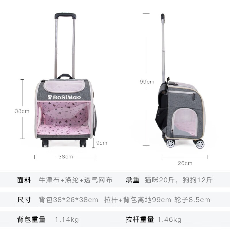 BOSIMAO猫咪外出拉杆箱透气出行推车双肩包大容量成猫幼猫便捷手提箱猫包 杏灰色-单独包包(不含拉杆)