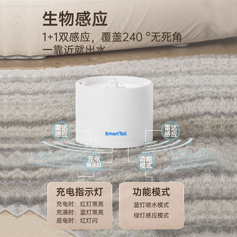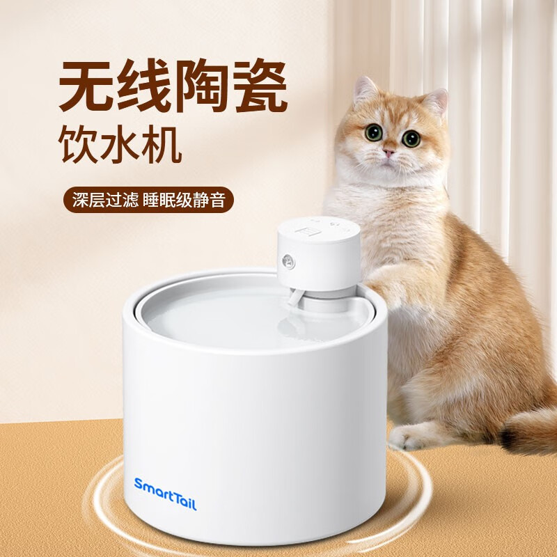 SMARTTAIL猫咪饮水机宠物饮水器不插电自动循过滤环狗狗喝水喂水器流动活水 白天使-陶瓷款1800mAh