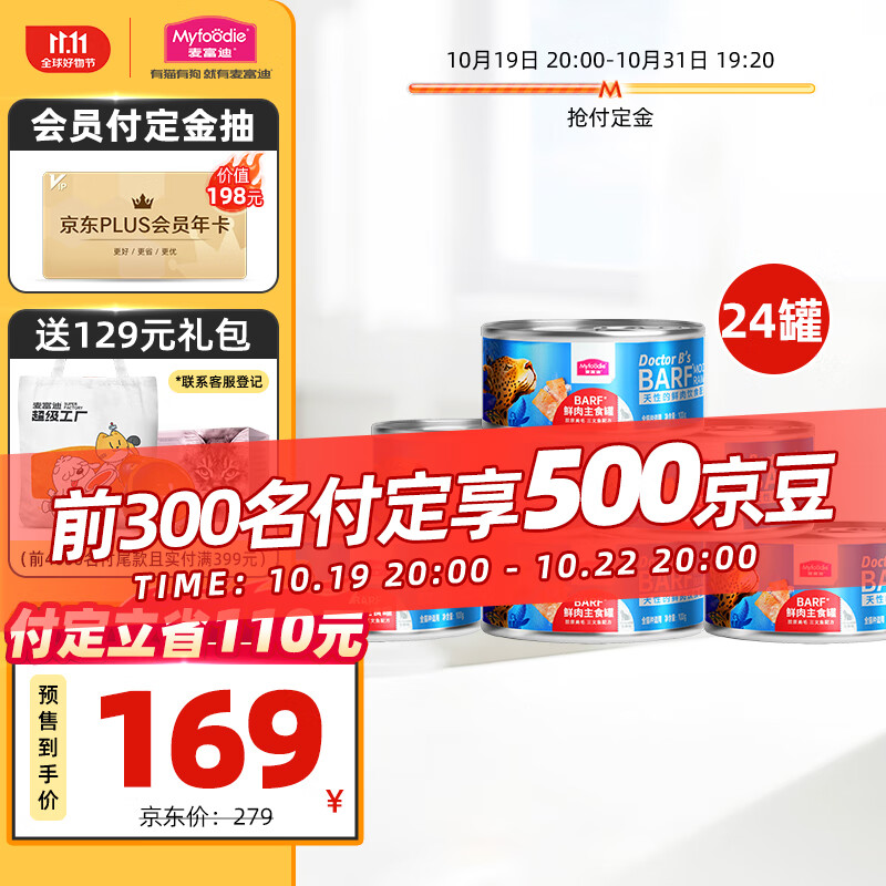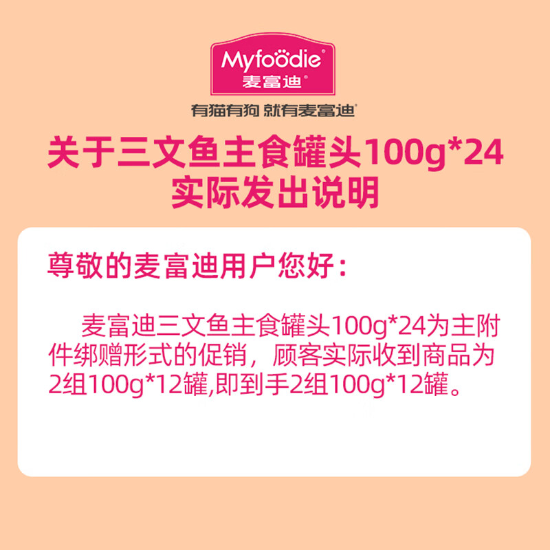 麦富迪(Myfoodie) 猫主食罐头混合100g*24【实发三文鱼罐头100g*24罐(含附件)】